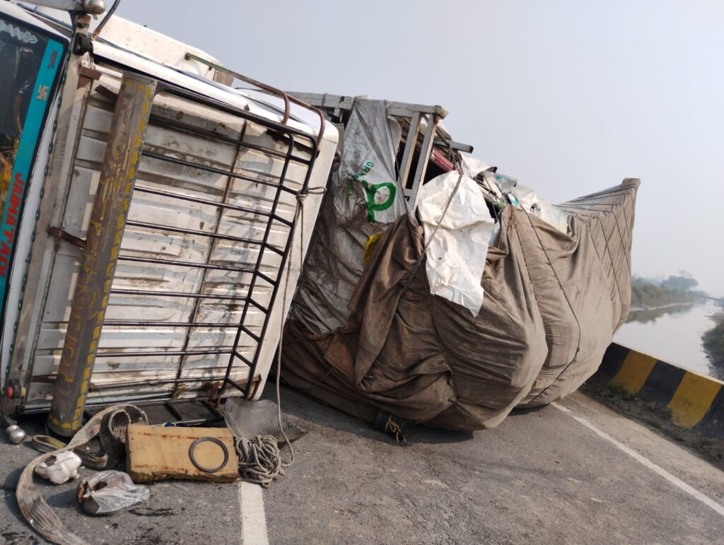 अनियंत्रित होकर पलटी शराब से लदी ट्रक,