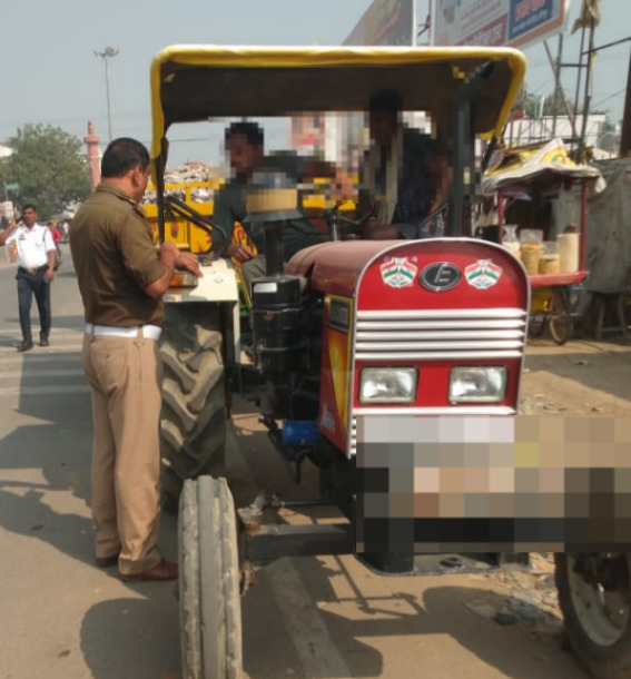 जौनपुर। यातायात पुलिस ने गुरूवार को ट्रैक्टर सम्बन्धित अभियान चलाकर 30 ट्रैक्टरों को चेक करते हुए उनका चालान व जुर्माना भी किया है। पुलिस ने ट्रैक्टर व ट्राली पर रेट्रो रिफ्लेक्टर टेप लगाते हुए उन्हें जानकारी दी कि अगर आपका ट्रैक्टर कृषि कार्य के लिए लिए हैं तो उसे आप कामर्शियल प्रयोग नहीं करेंगे और आपके ट्रैक्टर पर जो भी ड्राइवर होगा उसका लाइसेंस होना चाहिए ट्रैक्टर के ट्रॉली के पीछे रेट्रो रिफ्लेक्टर टेप लगा होना चाहिए। यातायात पुलिस ने उन्हें बताया गया कि आज के बाद इन उल्लंघन में अगर पाए जाते हैं तो उनके ट्रैक्टर को सीज की कार्यवाही किया जायेगा ।