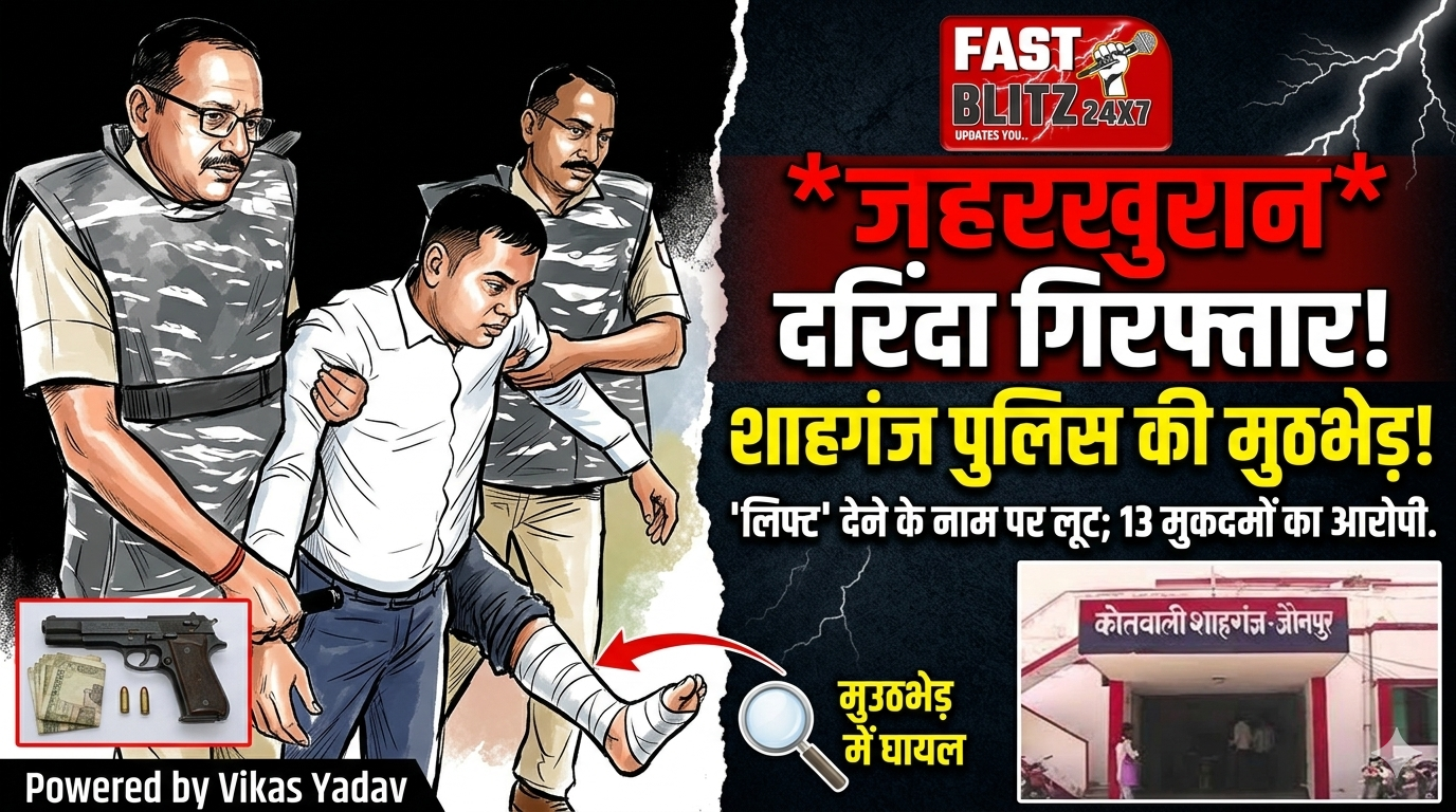 जौनपुर (शाहगंज): उत्तर प्रदेश के जौनपुर में अपराधियों और माफियाओं के खिलाफ जारी योगी सरकार के कड़े रुख का असर साफ दिख रहा है। अपराधियों के विरुद्ध चलाए जा रहे धुआंधार अभियान के तहत शाहगंज कोतवाली पुलिस ने आज एक बड़ी कामयाबी हासिल की है। पुलिस ने एक मुठभेड़ के दौरान अंतरजनपदीय जहरखुरान गिरोह के मुख्य सरगना को गिरफ्तार कर लिया। मुठभेड़ के दौरान पकड़े गए अभियुक्त के पैर में गोली लगी है, जबकि उसके तीन अन्य साथी अंधेरे का फायदा उठाकर भागने में सफल रहे। यह गिरफ्तारी शाहगंज पुलिस की तत्परता और जांबाजी का प्रमाण है।