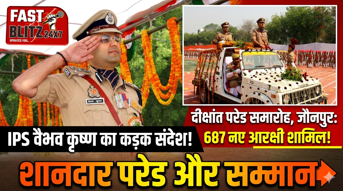 जौनपुर | पुलिस लाइन के परेड ग्राउंड में शुक्रवार को आरक्षी दीक्षांत परेड समारोह 2025-26 का भव्य आयोजन किया गया। 9 महीने की कड़ी ट्रेनिंग पूरी करने के बाद 687 रिक्रूट आरक्षियों ने शानदार मार्च पास्ट कर सलामी दी। मुख्य अतिथि वाराणसी परिक्षेत्र के डीआईजी वैभव कृष्ण ने परेड का निरीक्षण किया और नए आरक्षियों को कर्तव्यनिष्ठा की शपथ दिलाई।